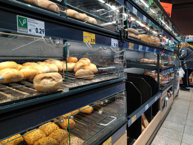 Supermärkte und Discounter wie Aldi, Lidl oder Rewe bieten in ihren eigenen Theken Backwaren aller Art an. Dazu zählen neben Laugenstangen, Donuts oder Brötchen auch verschiedenste Brotlaibe. Ein schneller Griff mit der Zange in das jeweilige Fach, die Ware in die Tüte und schon hat das Brot den Besitzer gewechselt.