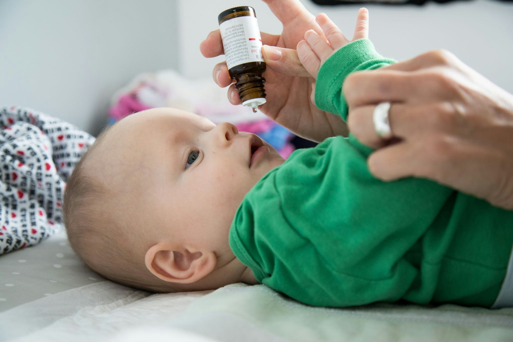 Die Zeitschrift rät zu Tabletten, weil bei Tropfen doch mal einer zu viel auf dem Löffel landen könnte. Tipp: Legen Sie die Tablette auf einen Teelöffel, geben Sie wenige Tropfen Wasser dazu und schwenken den Löffel so lange, bis die Tablette zerfallen ist. Das schieben Sie dem Baby am besten zu einer Mahlzeit in den Mund.